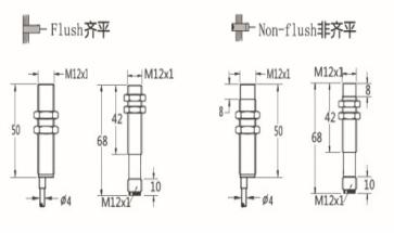 Thread size / 螺紋尺寸: M12 屏蔽式 / M12 非屏蔽式